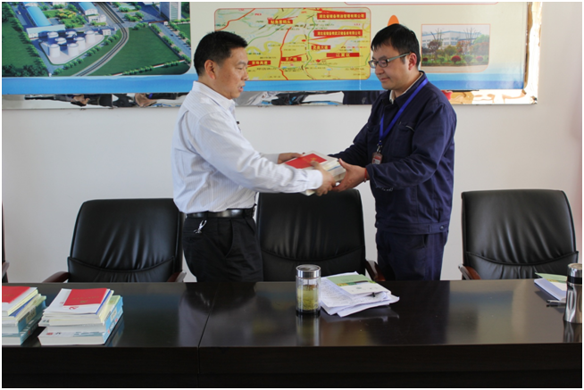 4月28日下午,湖北省储备粮油管理有限公司第三党支部在党员周四定期学习会上举行了简朴的授书仪式。支部书记董成华为第三党支部全体党员分发了《中国共产党章程》、《习近平总书记系列重要讲话读本》、《国学读本》、《弟子规》、《菜根谭》等八本书,并对第三党支部全体党员提出了新的学习要求,第三党支部全体党员纷纷表示将认真学习,加强党性修养。