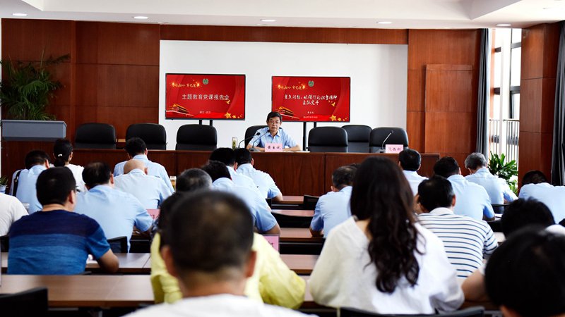 根据公司“不忘初心、牢记使命”主题教育工作安排,8月19日下午,公司召开主题教育专题党课报告会,党委书记、董事长黄生斌为总部全体党员、子公司支部书记和主要负责人讲了一堂名为《聚焦问题,以强烈的担当精神真抓实干》的专题党课。公司党委委员、工会主席熊西衡主持会议。