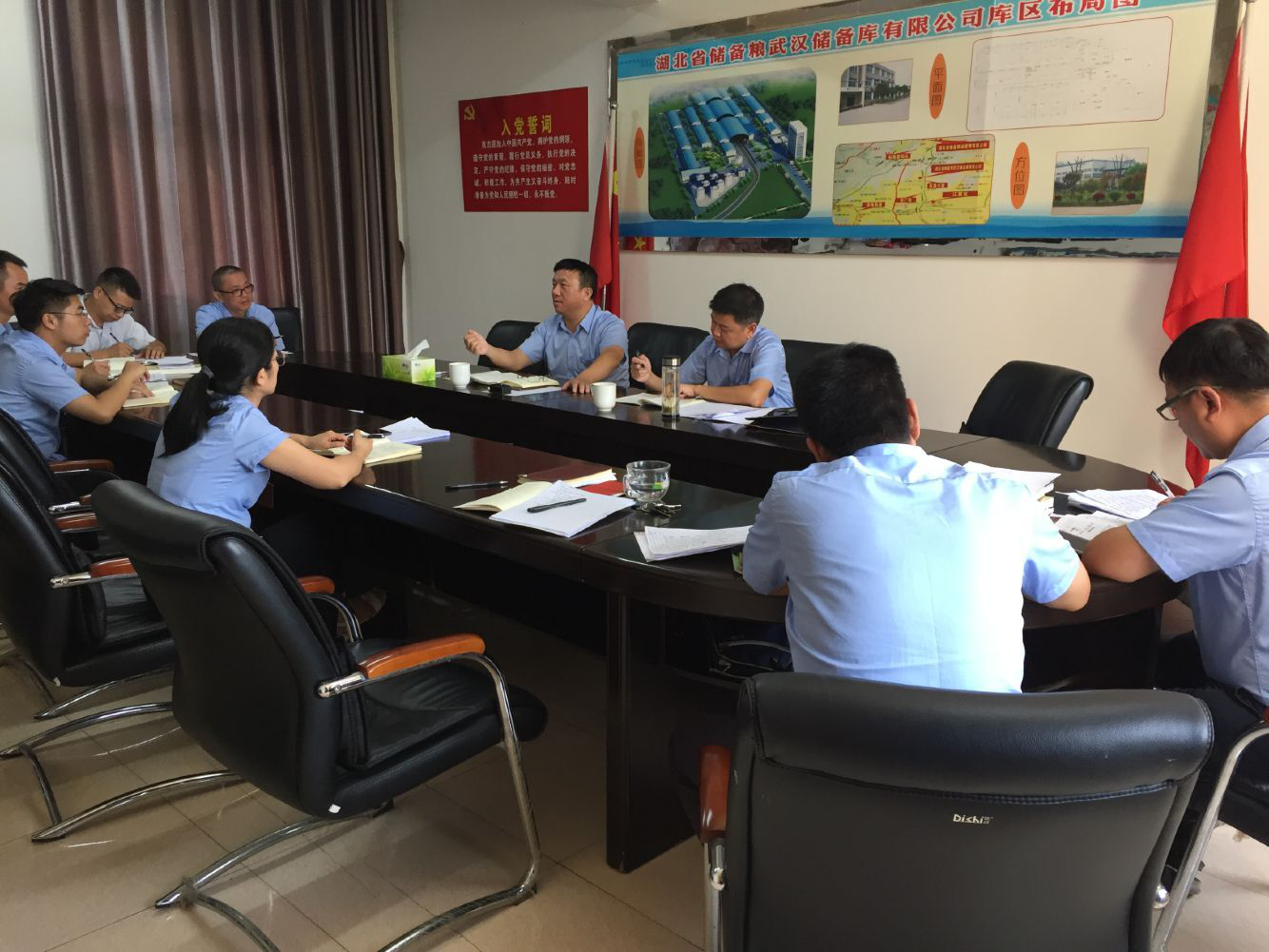 最后,他还对武汉支部下一步的党建工作开展提出了指导意见:一是要从思想上重视党的政治理论学习,提升学以致用的能力和水平,发挥党建工作的引领作用;二是要不断提升党建工作标准化、规范化水平,把党建工作抓细抓实;三是要创新工作方法,通过规范“党员示范仓”等措施,争创“红旗党支部”。