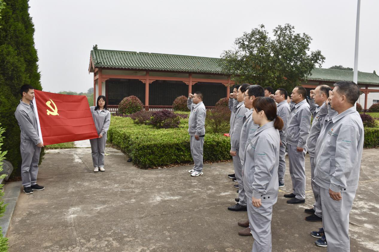 全体党员在纪念碑前整装肃目,向着党旗,高举右手、握紧拳头,重温入党誓词,坚定理想信念。