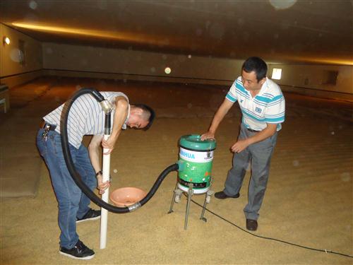 6月7日,国家粮食局科学研究院、中国农业大学、武汉工业学院联合开展的“多杀菌素、苯氧威储粮防护剂实仓应用试验”项目在武昌库如期顺利展开。谢令德教授、贺艳萍副教授带领的研究团队一行6人来到湖北武昌国家粮食储备库,与库科学储粮小组一起确定了“储粮防护剂实仓中的应用试验”试验仓及工作预案,对实验仓的粮情进行了摸底调查,并检录相关数据。