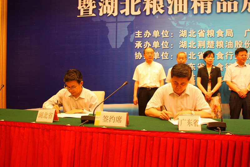 5月27日,湖北省储备粮油管理有限公司相关同志,在公司董事长黄生斌的带领下,赴广东省参加2014年湖北粮油精品展示推介对接活动。为参加此次对接活动,公司所属豪丰米业公司、国储米业公司精心准备了六个品种六种包装的大米样品参加展示,得到广东省粮食部门及粮油加工、购销企业和采购商的热切关注和积极评价。在展会上,公司还与广东省储备粮管理总公司签订了战略合作协议,在资源利用、产品销售、企业管理等多领域、全方位建立战略合作伙伴关系。