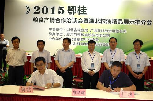 5月22日,“2015鄂桂粮食产销合作洽谈会暨湖北粮油精品展示推介会”在广西南宁召开。公司董事长黄生斌、副总经理姜志荣及相关部门同志携公司所属米厂十个大米品牌参加了此次推介会,并与广西壮族自治区储备粮管理有限责任公司签订战略合作协议。展会间隙,双方就储备粮管理、轮换方式、绩效考核办法、企业管控模式、仓储工作信息化建设等内容进行了交流和学习。