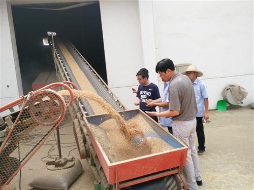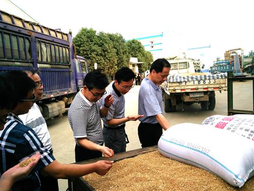 黄生斌董事长一行先后深入杨庄公司、随州公司、应城库收购点,仔细查看收购库点小麦质量情况,现场询问售粮农民小麦收成、出售、等级、价格等情况。