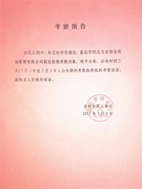 省粮食局人事处考察预告