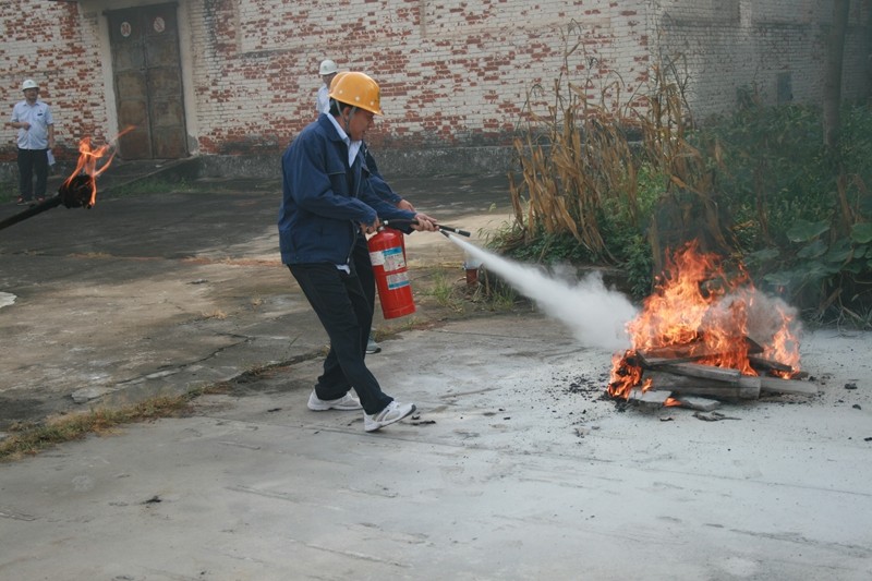 8:30分,消防灭火演练准时开始。全体干部员工首先进行了干粉灭火器灭火演练,然后进行了义务消防队灭火演练。这次演练中,义务消防队员首次动用了新购置的消防车,随着指挥员一声令下,义务消防队员们按照各自分工,迅速奔向模拟火场,消防车和固定式消防泵先后启动,进行了联合灭火演练,两条水龙直扑模拟火点。消防练演取得了圆满成功。