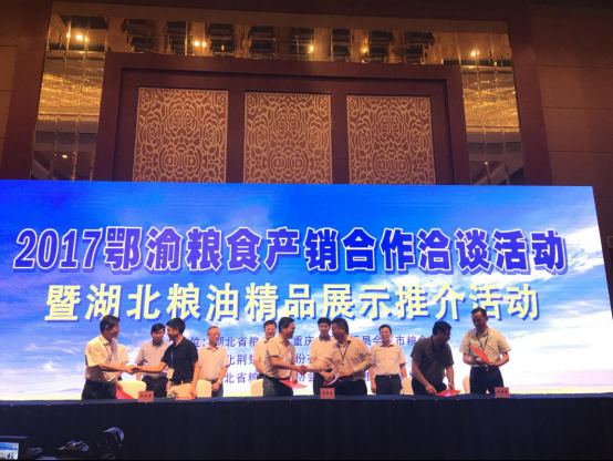 9月8日,2017鄂渝粮食产销合作洽谈活动暨湖北粮油精品展示推介会在重庆召开。湖北省储备粮油管理公司董事长黄生斌与合作企业重庆市储备粮管理有限公司总经理冯佑富签订了战略合作协议,在充分发挥湖北省粮食主产省资源和重庆市粮食销售市场优势、产销对接、合作共赢、推进双方储备粮规范化管理等多领域建立战略合作伙伴关系。会议间隙,公司代表赴重庆市合川区储备粮有限公司进行学习考察,就企业储备粮管理办法、绩效考核、薪酬管理模式等工作进行了座谈交流和实地参观学习。
