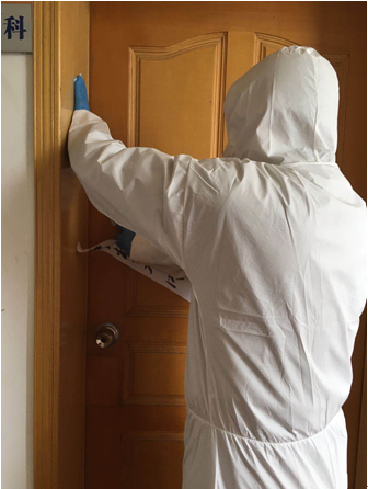 随后,根据预案,各小组展开工作:消杀组杨勇华、索伟对龙芳接触的场所、物品进行全面消杀和封存;统筹组及时排查与其密切接触人员,通知其他科室人员关闭办公室,原地待命;交通组高磊接到指令后,将车辆消毒停在隔离室前,在与本地定点医院川店卫生院联系后,龙芳在代中兰的陪同下前往该院就诊;消杀组对隔离室进行消杀和封锁。不久,信息组传来消息(模拟):龙芳属普通感冒引起发热,应急演练结束。