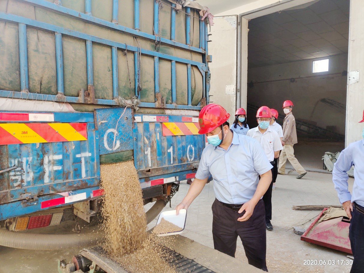 在收购现场详细了解收购各环节的操作过程,认真听取了子公司负责人关于今年夏粮收购市场调研、粮食品质、价格策略和收购进度的汇报,随机抽查入库小麦质量,慰问奋战收购一线保管员,了解公司疫防疫、防暑措施及物资配备情况,强调要务必做好疫情防控和高温防暑工作,确保职工及送粮客户身体健康和生命安全。并同送粮客户亲切交谈,了解夏粮收成及农户余粮情况,询问公司收购服务质量并听取相关意见及建议。