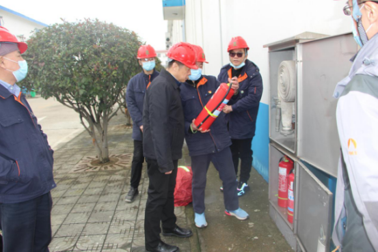 胡新明一行现场查看了微型消防站、仓库、办公楼、食堂等“两个安全”和消防安全情况,了解职工灭火器使用情况以及用火用电用气管理等,详细询问了粮油应急保供建设情况。胡新明对孝感公司过去一年的工作给予充分肯定,他强调,每年的粮食行业安全问题典型案例值得深思和警醒,要特别加强安全工作。