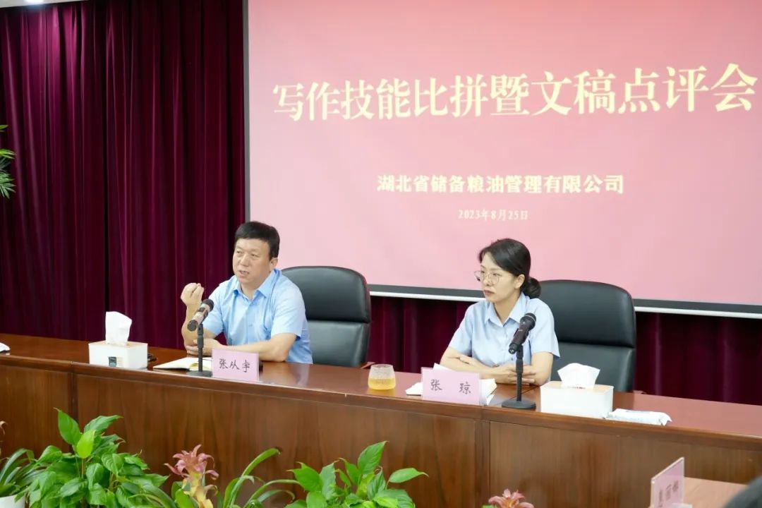 8月25日,省储备粮油管理公司召开写作技能比拼暨文稿点评会,党委书记、董事长、总经理张从宇出席会议,党委委员、副总经理张琼主持会议。