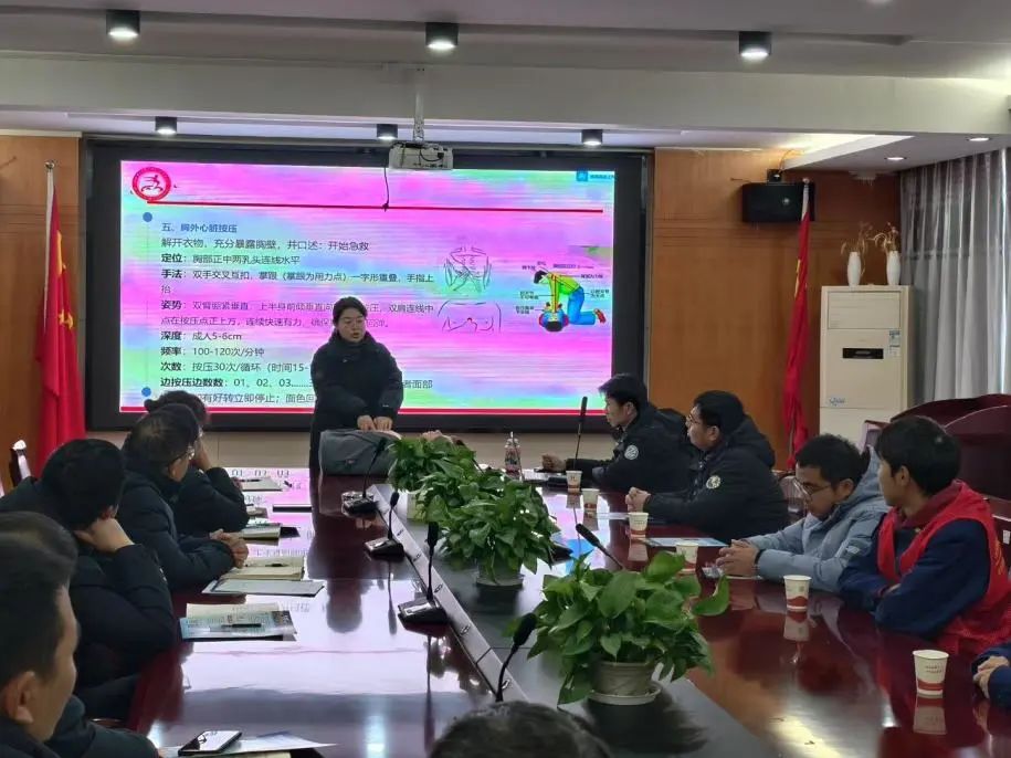 学院师生代表结合火灾事故案例及企业火灾特点,系统介绍了防灭火常识、初期火灾的扑救、如何疏散人员、安全逃生、自救常识以及如何做好日常防火检查等内容。通过“理论+实践”模式现场演示了心肺复苏、海姆立克急救法的操作和灭火器正确使用方法。
